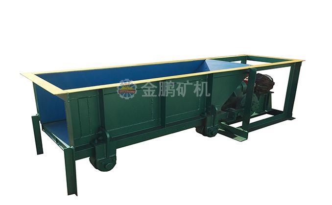 槽式給礦機設備一般安裝在料倉出料口下部,礦石落入槽體底部的漏板上,底部漏板設置在滾輪上,并通過偏心機構使漏板與雙出軸的減速機相連,然后通過聯軸器與電動機相接。工作時,由電動機通過聯軸器帶動減速機,并通過偏心盤與設備在槽架底部和滾輪之間的漏盤一起往復直線運動,從而完成均勻給料。