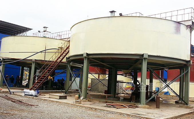 1、 攪拌浸出---金的浸出主要是在浸出槽中實(shí)現(xiàn)的,含氰化物的礦漿在葉輪和壓縮空氣的作用下,被強(qiáng)烈攪拌,有利于提高浸出效果。浸出槽通常采用多臺(tái)串聯(lián)配置;
