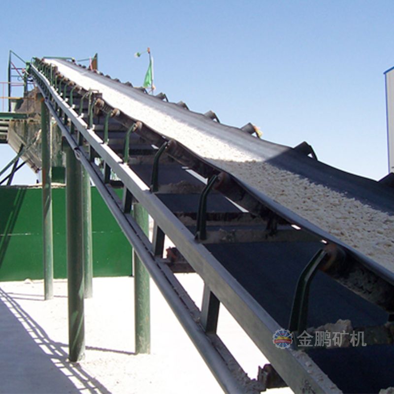 5、帶體薄能自重輕由于聚酯帆布強(qiáng)度大,約為棉帆的2.5-9倍,與棉帆布芯輸送帶比,可以減層,從而帶體薄,自重輕,成槽性好,既提高輸送又可減少傳動功率,并相對又可以減少帶輪直徑,達(dá)到節(jié)約目的。
